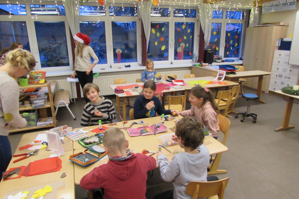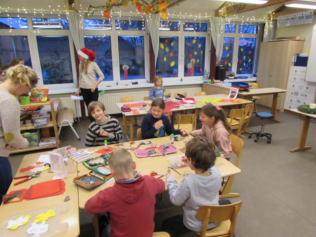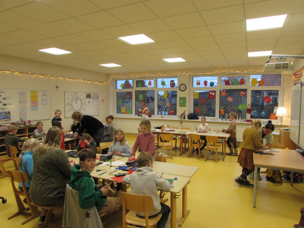 läuteten mit einem gemeinsamen Adventssingen den Basteltag ein. Nicht nur weihnachtliche Klänge erfüllten unsere Schule, sondern auch ein köstlicher Duft. Denn natürlich darf an so einem Tag die Verpflegung nicht zu kurz kommen! Für alle Bastelnden gab es frische Waffeln und für die helfenden Hände der Erwachsenen dazu einen heißen Kaffee. Vielen Dank an alle Eltern und Großeltern, die mitgeholfen haben, die Schule zu dekorieren und uns mit diesem schönen Tag auf Weihnachten einzustimmen.