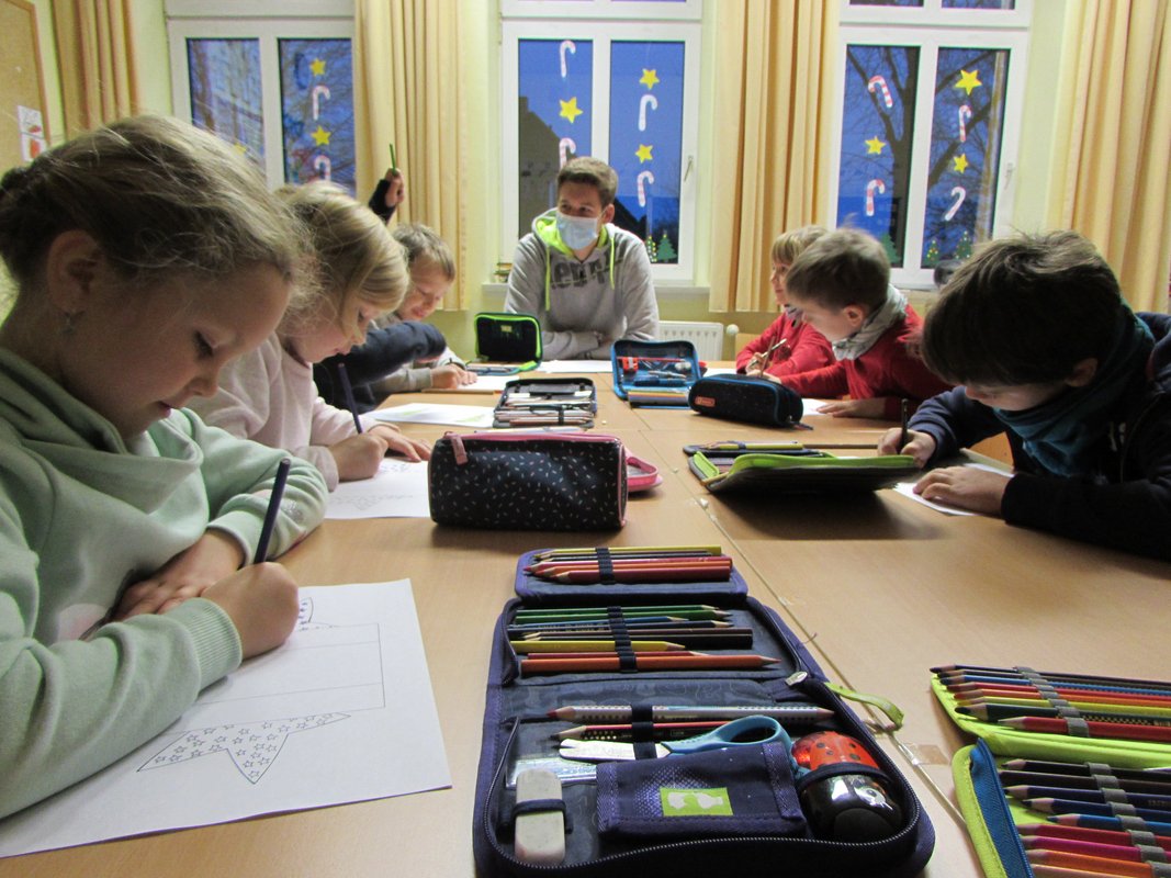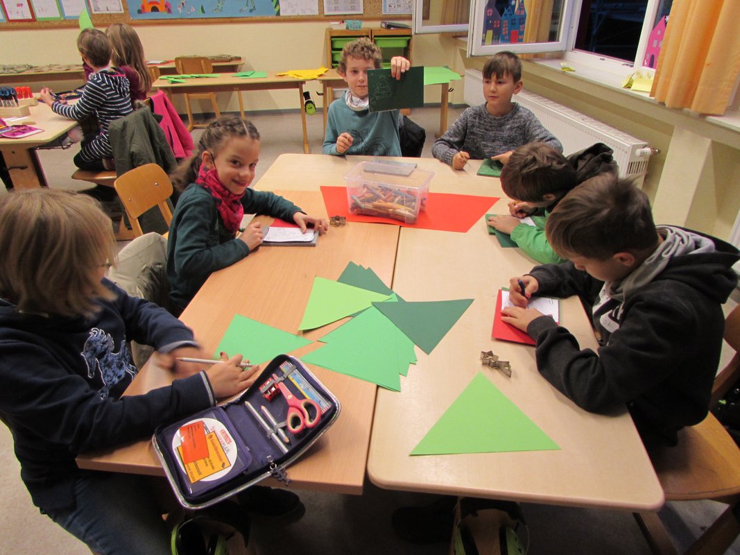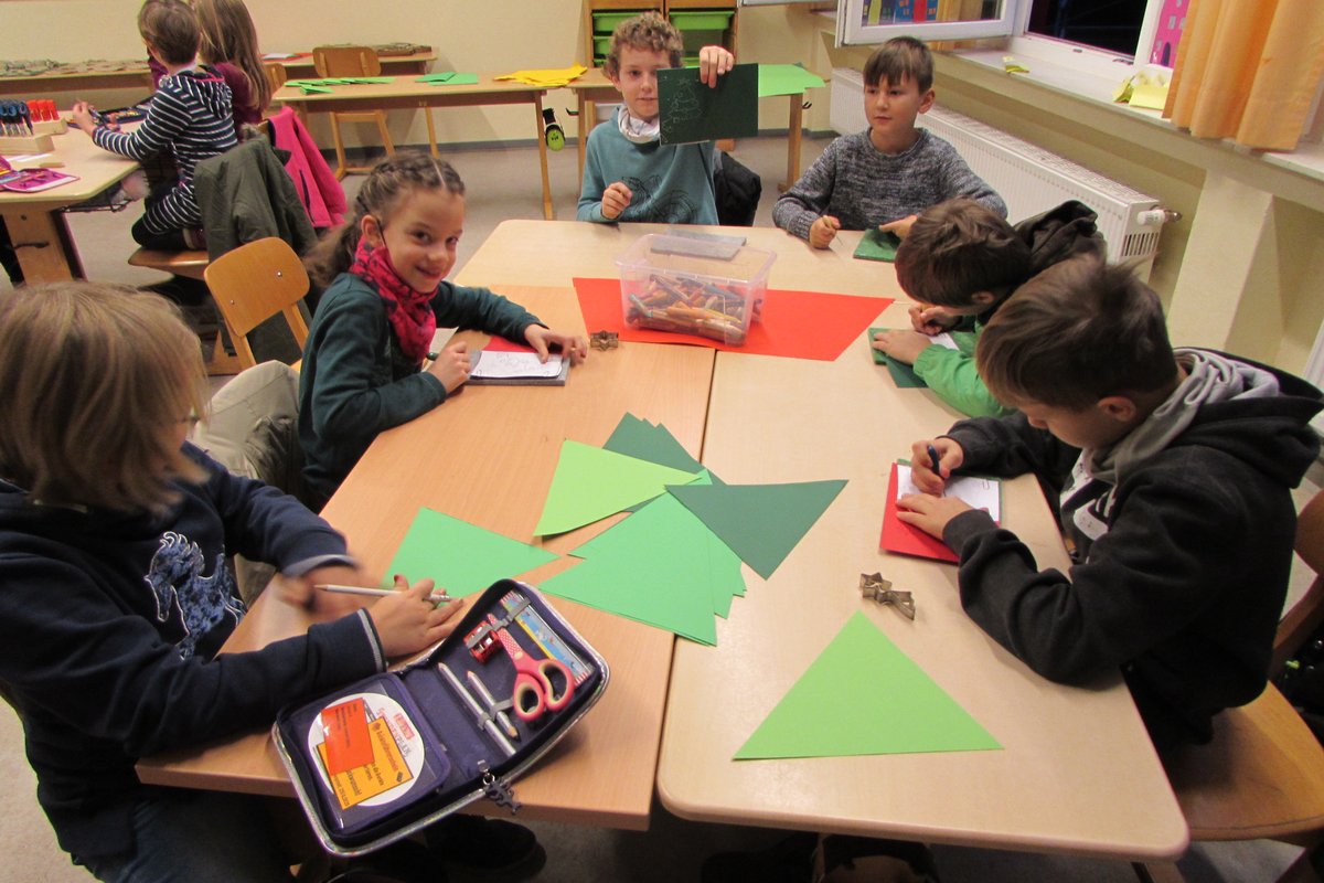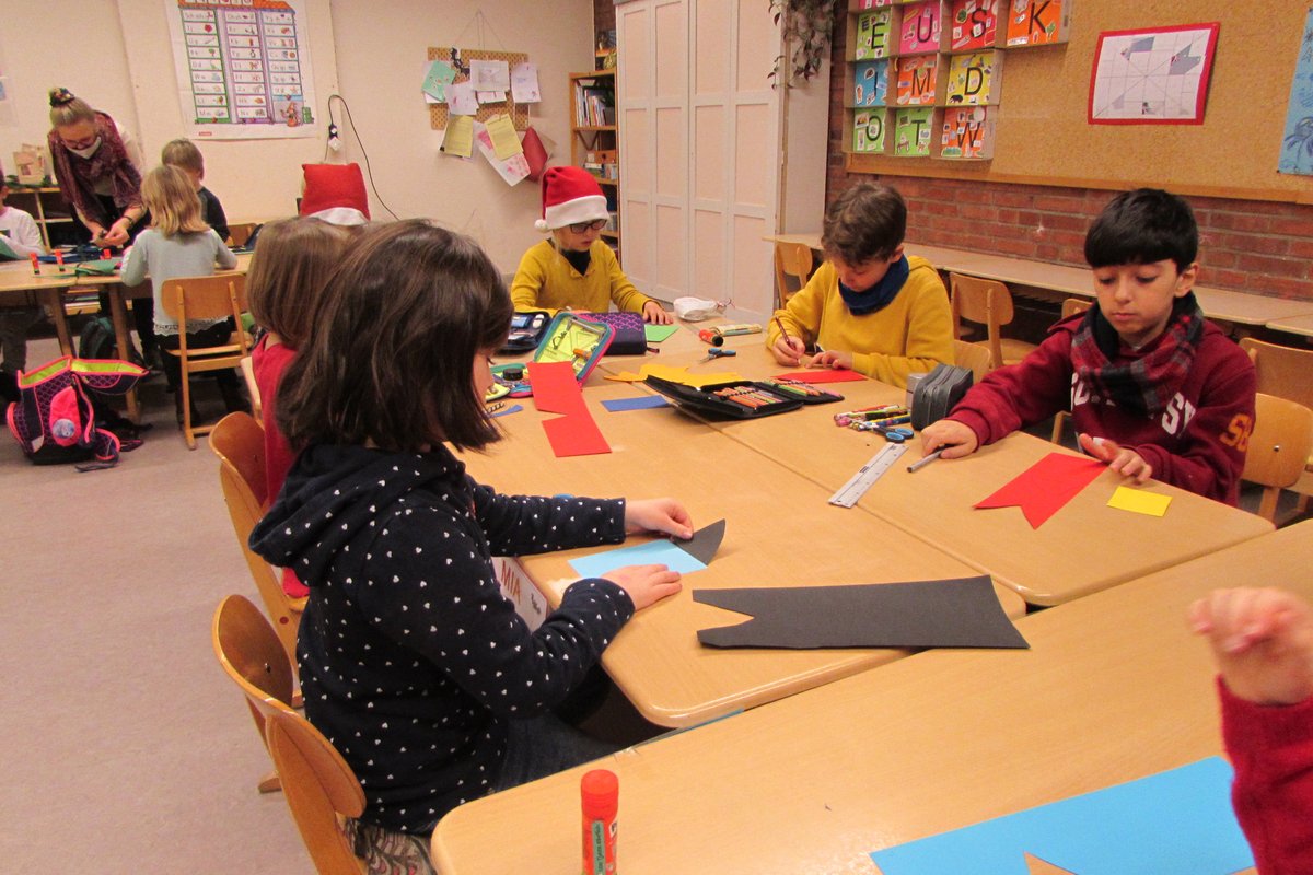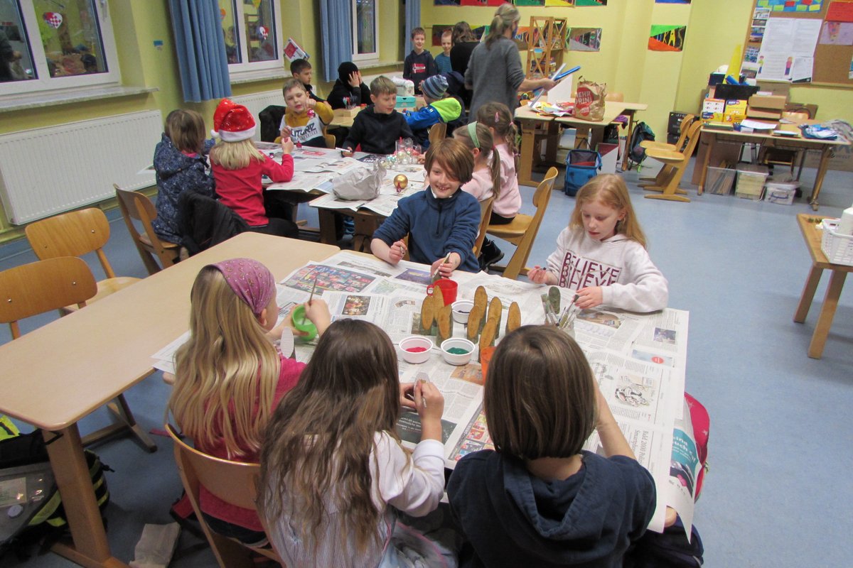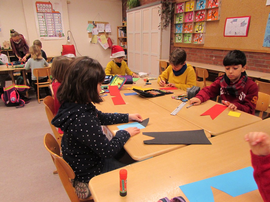 Weihnachtsstimmung verbreitet sich in der Grundschule Borgstedt. Der geschmückte Weihnachtsbaum leuchtet im Eingangsbereich und der Nikolaus hat für jedes Kind einen kleinen Gruß in der Schule vorbeigebracht. In den Klassen wurde an diesem Tag zu Weihnachtsmusik fleißig gebastelt. Fensterschmuck, Anhänger für den Weihnachtsbaum, Wichtel, Weihnachtskarten und vieles mehr wurde ausgeschnitten, geklebt, verziert und bemalt. Bei den vielen Weihnachtsmützen, die an diesem Tag in unserer Schule zu sehen waren, kam man sich vor wie in der Wichtelwerkstatt vom Weihnachtsmann. Da auch Wichtel ab und zu eine Pause brauchen, wurde zur Erholung in gemütlicher Runde ein Weihnachtsfilm geschaut.