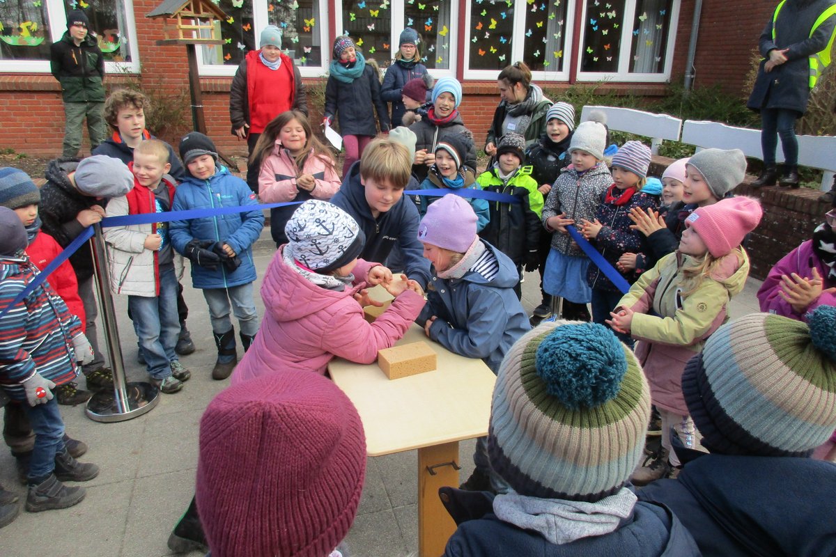 Nachdem im Kinderparlament der Wunsch nach einem Wettbewerb im Armdrücken geäußert wurde und dieser große Zustimmung fand, machten sich Kinder aus Klasse 4 an die Organisation. Nach einem ersten Planungsgespräch mit Herrn Jaekel fragten sie in den Klassen die Teilnehmerzahl ab, entwickelten einen Turniermodus, recherchierten das Regelwerk und erstellten Urkunden. Im März hieß es dann jeden Freitag in der großen Pause für eine andere Klassenstufe: Ärmel hochkrempeln, Ellenbogen auf den Tisch, Hände zusammen und drücken was das Zeug hält. Alles unter den wachsamen Augen der Viertklässler, die sich um das Ansagen der Kontrahenten, das Schiedsrichten und die ordnungsgemäße Dokumentation der Ergebnisse kümmerten. Die zahlreichen Zuschauer feuerten mit Leibeskräften und mit großer Begeisterung die Kinder an und jeder, egal ob Sieger oder Verlierer, wurde am Ende gefeiert! Es gab zahlreiche packende Duelle, von denen einige nur durch ein Schnickschnackschnuckduell am Ende zu entscheiden waren, da die Kinder sich einfach nicht geschlagen geben wollte und gleich stark waren. Wir danken den Viertklässlern für die Organisation dieses tollen Wettkampfs und allen Kindern für die Teilnahme und das grandiose Anfeuern!