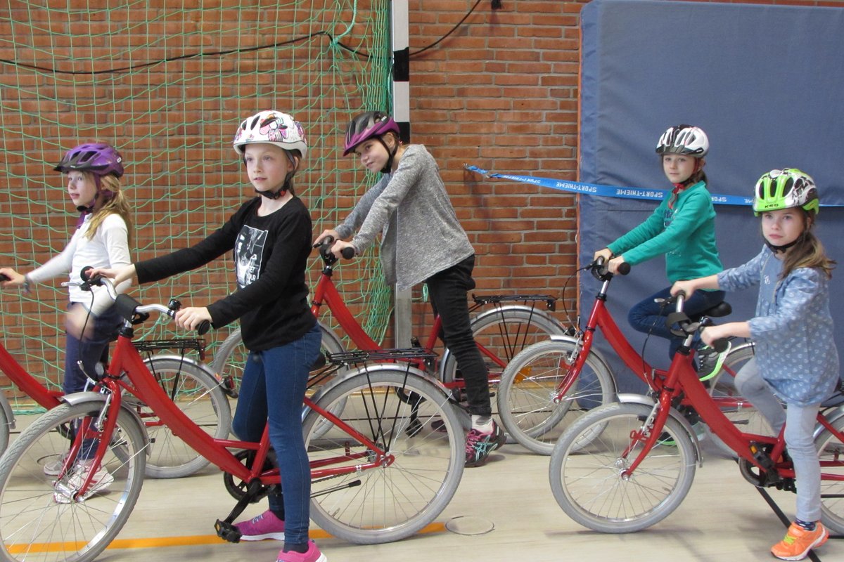 Die Turnhalle wurde zum Hindernisparcours für Fahrrad und Roller, denn in dieser Woche war das Bewegungsmobil in unserer Schule zu Gast. Ob Wackelbrücke, Fahrradlimbo…