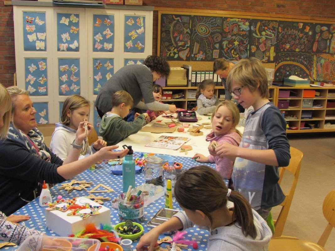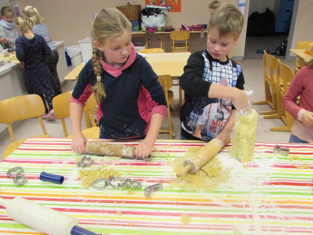 Mit dem Basteltag wurde in der Grundschule Borgstedt die Weihnachtszeit eingeläutet. In allen Räumen warteten Bastelstationen auf die vielen fleißigen Kinderhände. Zu weihnachtlicher Musik, wurde geschnippelt, gebacken und geklebt. Sterne, Engel, Christbaumschmuck, Elche, Fensterbilder, Nikolausstiefel, Weihnachtstüten und vieles mehr, lassen unsere Schule nun in weihnachtlichem Glanz erstrahlen. Besinnlich wurde es abschließend zum Weihnachtssingen in der Aula. Fast hätte es auch noch geschneit, denn das Lied "In der Weihnachtsbäckerei" wurde von allen so inbrünstig gesungen, dass der Putz beinahe von den Wänden fiel.