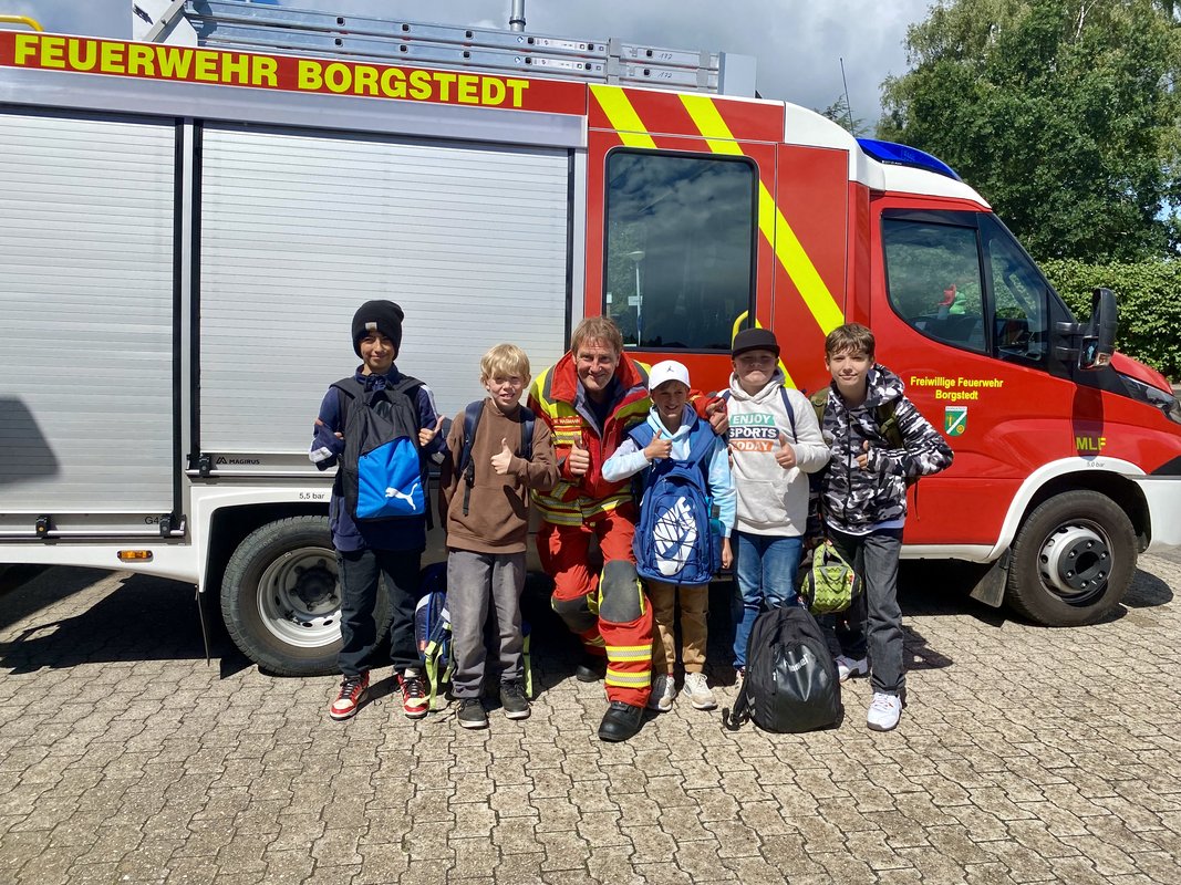Wir bedanken uns ganz herzlich bei der Borgstedter Feuerwehr, die sich die Zeit genommen, geduldig alle Fragen beantwortet und den Kindern in ganz kleinen Gruppen diesen besonderen Tag ermöglicht hat!