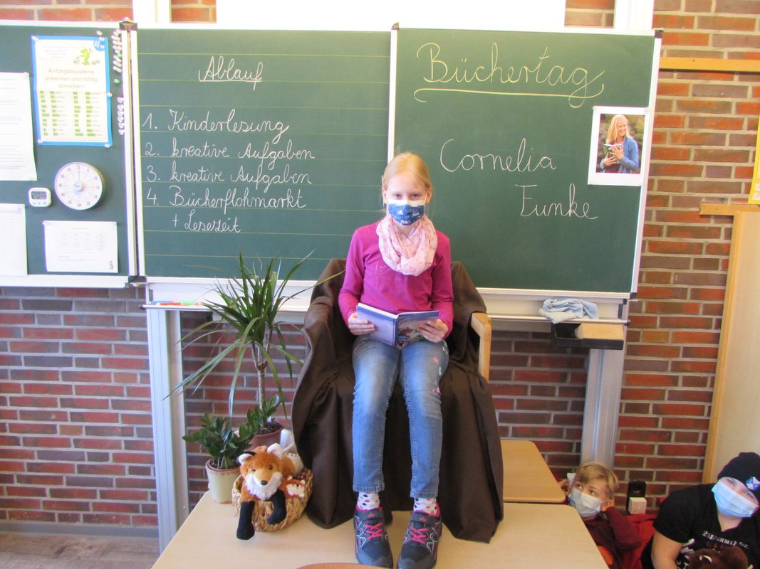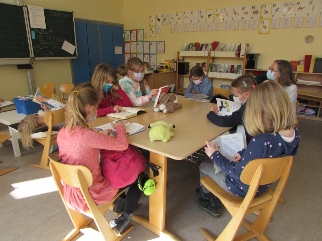 Wer wollte, konnte seinen Klassenkameraden bei einer Kinderlesung eine kurze Leseprobe aus seinem Lieblingsbuch vortragen. Spannende, lustige, fröhliche und gruselige Auszüge machten Lust auf mehr und manch einer konnte es gar nicht erwarten, endlich selber Bücher zu verschlingen. Zu unterschiedlichen Autoren gab es an diesem Tag viele kreative Aufgaben. Hörproben, Detektivaufgaben, Bastelangebote und Vieles mehr warteten auf die Kinder. Einige haben sich sogar selbst als Buchautoren oder Gestalter eines Buchcovers versucht.