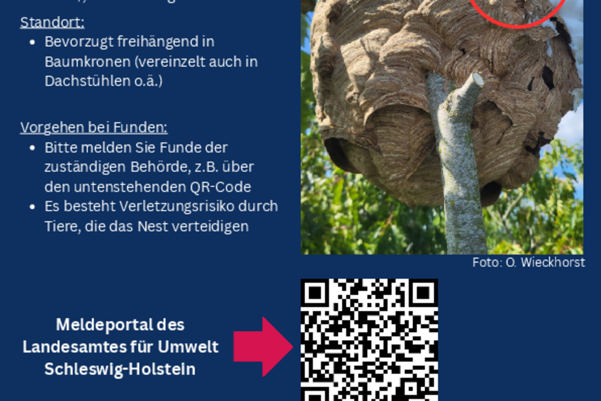 Im vergangenen Jahr wurde erstmalig auch in Schleswig-Holstein ein Nest der Asiatischen Hornisse (Vespa velutina nigrithorax) nachgewiesen. Der Erstfund eines solchen…