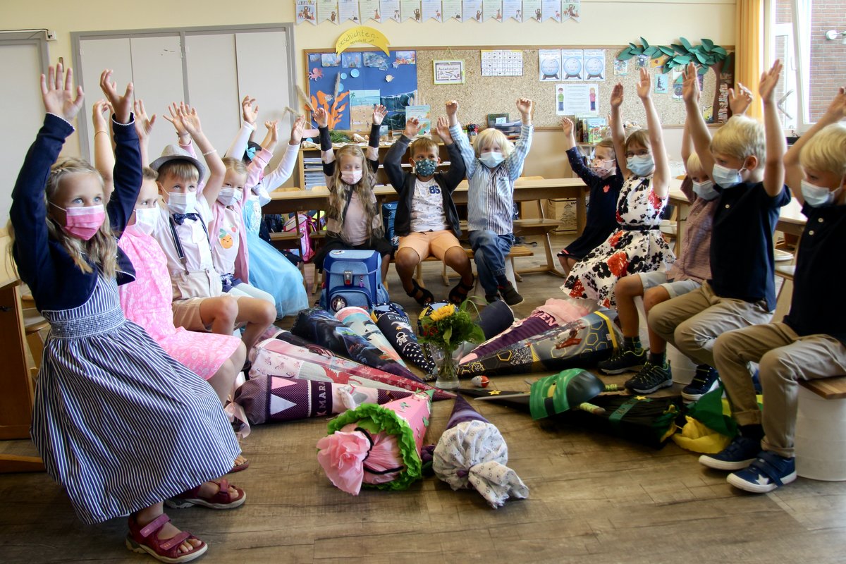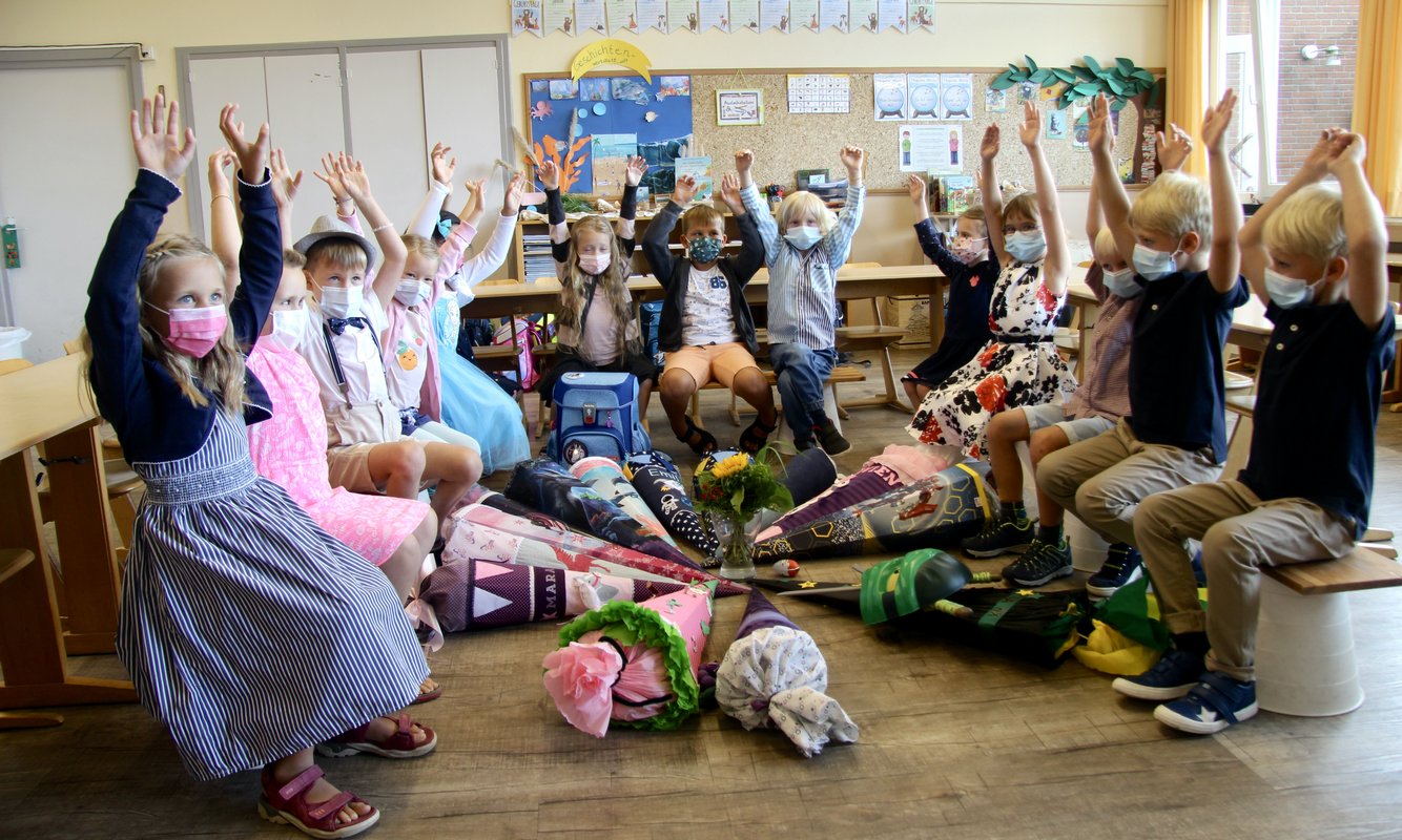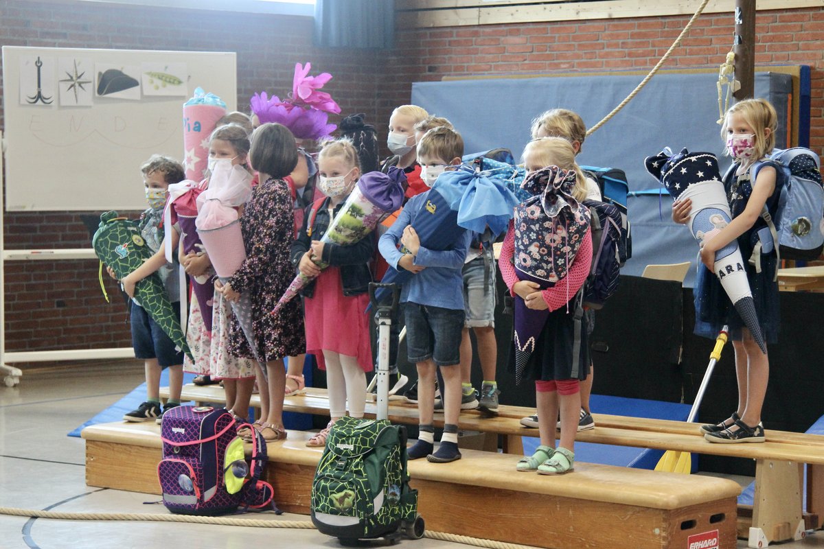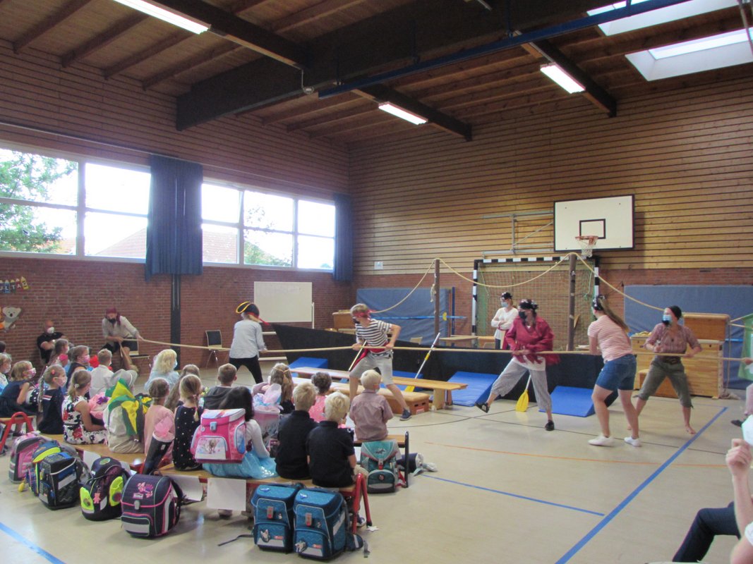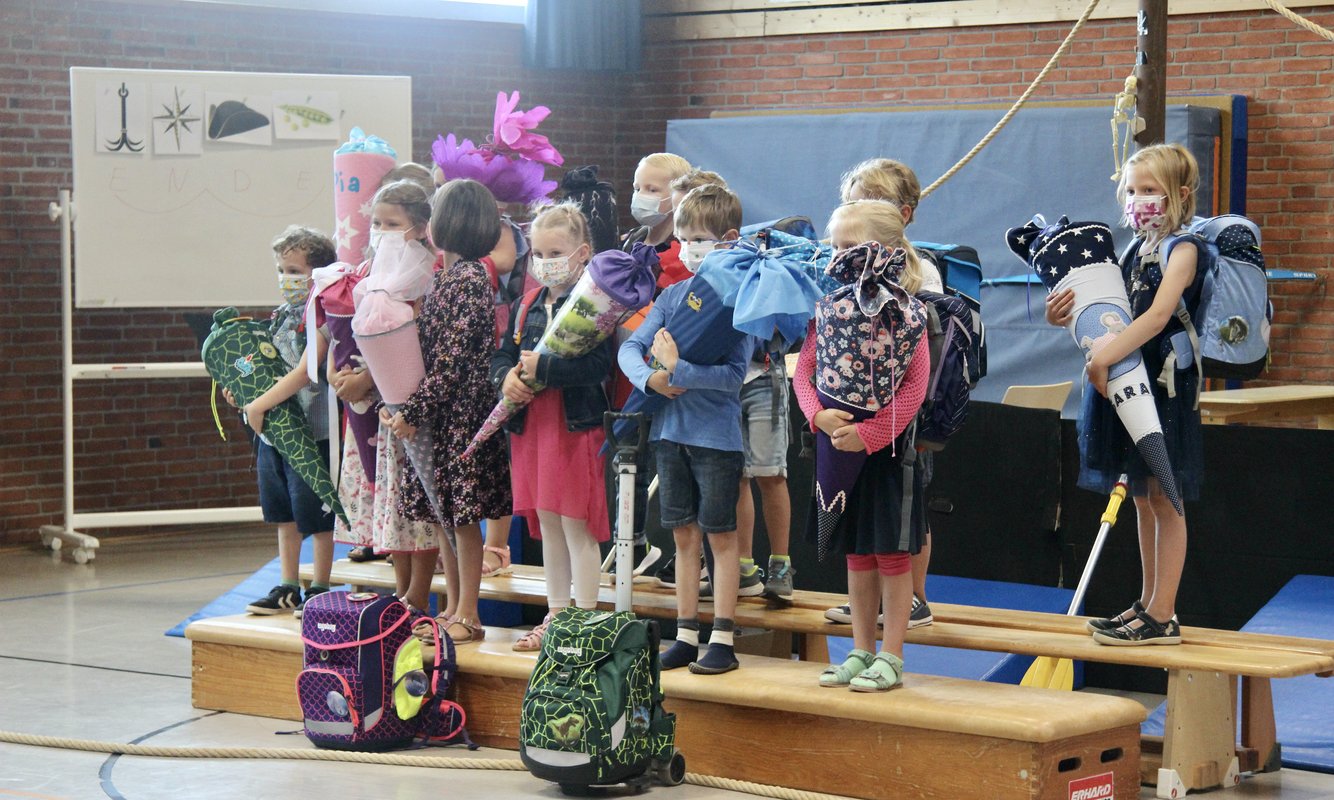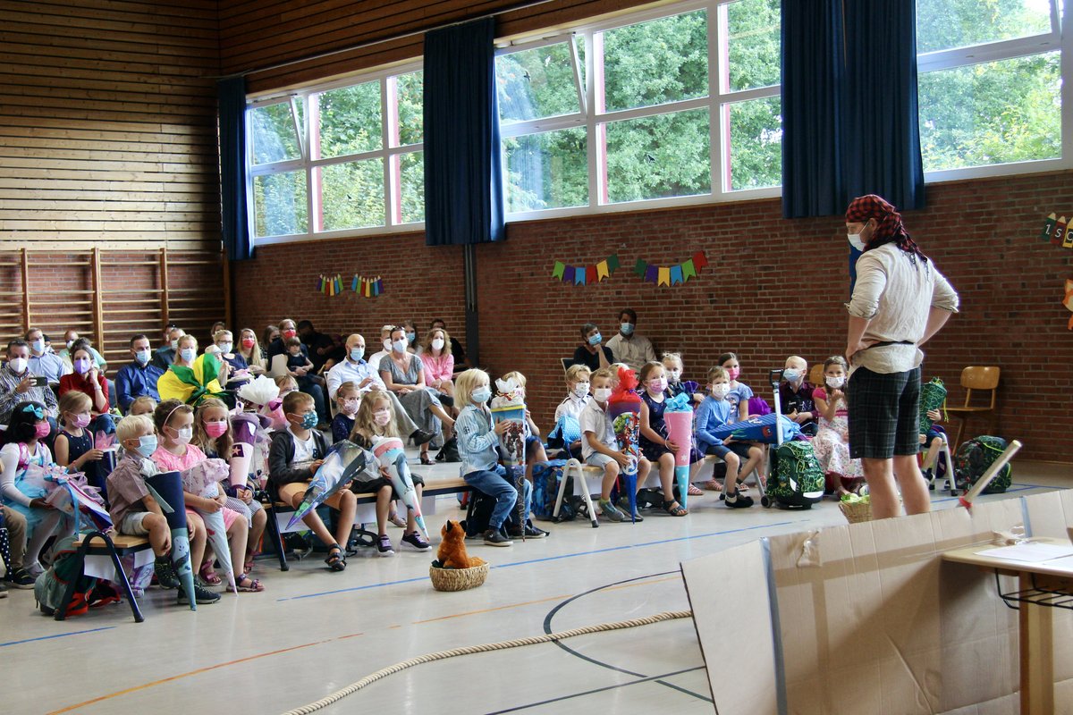 Die Mannschaft der Grundschule Borgstedt freut sich über Verstärkung an Bord: die Füchse und Koalas haben das Deck betreten und stürzen sich nun ins Abenteuer Schule! Proviant haben sie auch gleich mitgebracht, gut verpackt in prächtigen Schultüten. Sie sind also gut gerüstet für die nächsten 4 Jahre. Auf dem Einschulungsprogramm der neuen Erstklässler*innen standen ein spannendes Theaterstück des Kollegiums mit Piraten, Schätzen und Kartoffelsuppe, Mut machende, liebevolle Worte von Pastor Feldmann und jede Menge donnernder Applaus. Nach einer ersten Schnupperstunde im Klassenraum strahlten die Kinder zum Abschluss einer bunten und fröhlich en Einschulungsfeier für das Klassenfoto in die Kamera.
