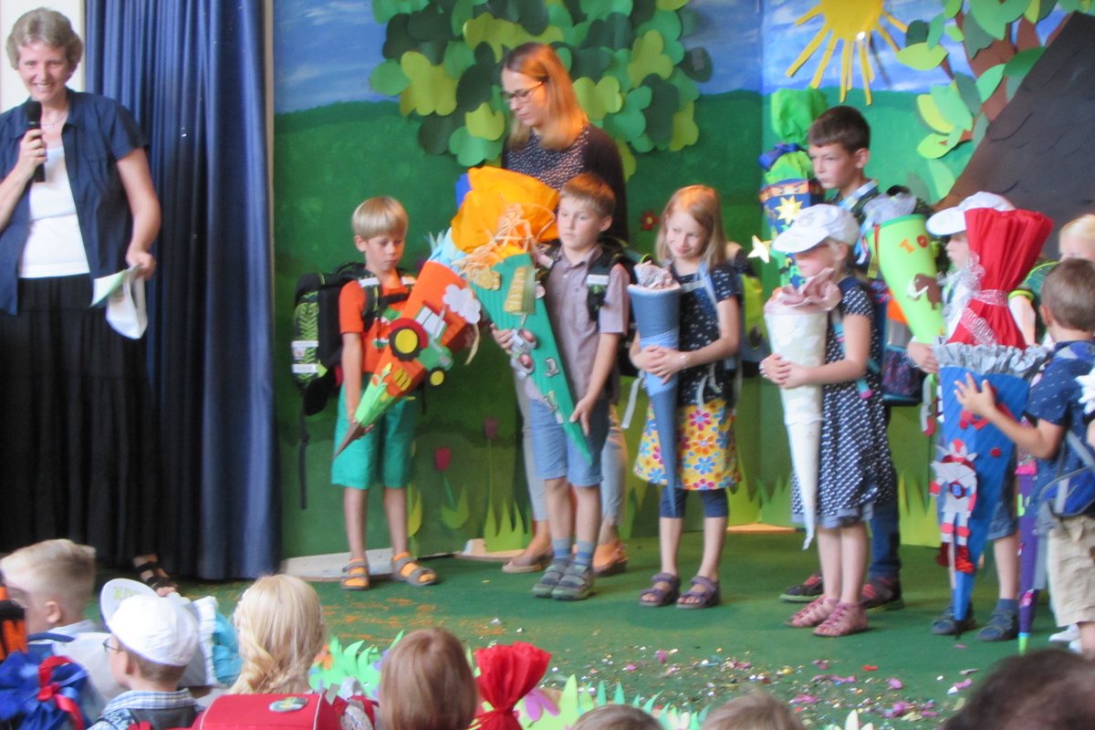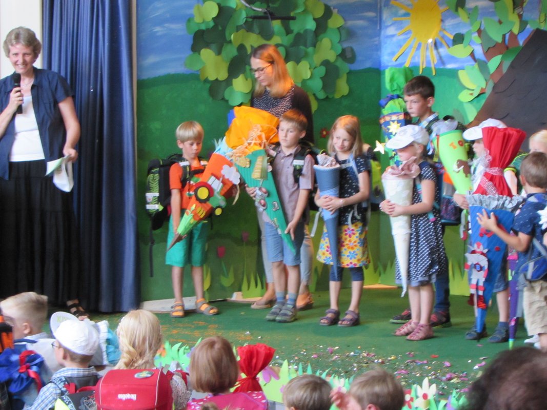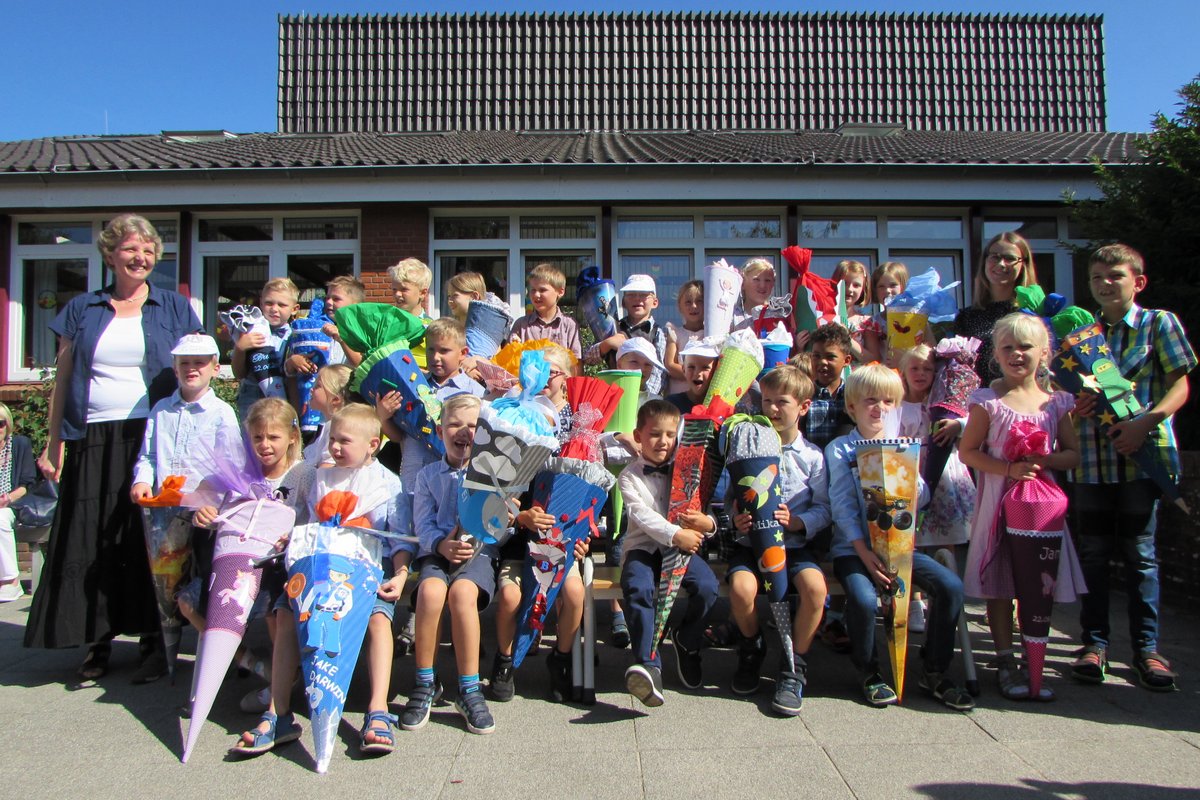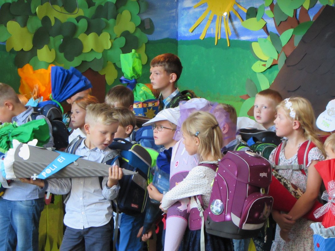 Mit einem bunten Programm wurden unsere neuen Erstklässler willkommen geheißen. Der aufregende Tag begann mit einem Gottesdienst in Borgstedt, bei dem Pastor Feldmann „den Hut aufhatte“. Im Anschluss ging es in die Schule. So manch einer konnte kaum hinter der großen Schultüte hervorschauen, um den Auftritten des Theater- und Musikprojekts zu lauschen. Nach einer kurzen Vorstellungsrunde im neuen Klassenraum warteten die stolzen Eltern und Großeltern bereits auf dem Schulhof und sorgten beim Klassenfoto für ein ordentliches Blitzlichtgewitter.