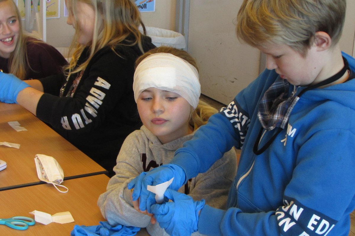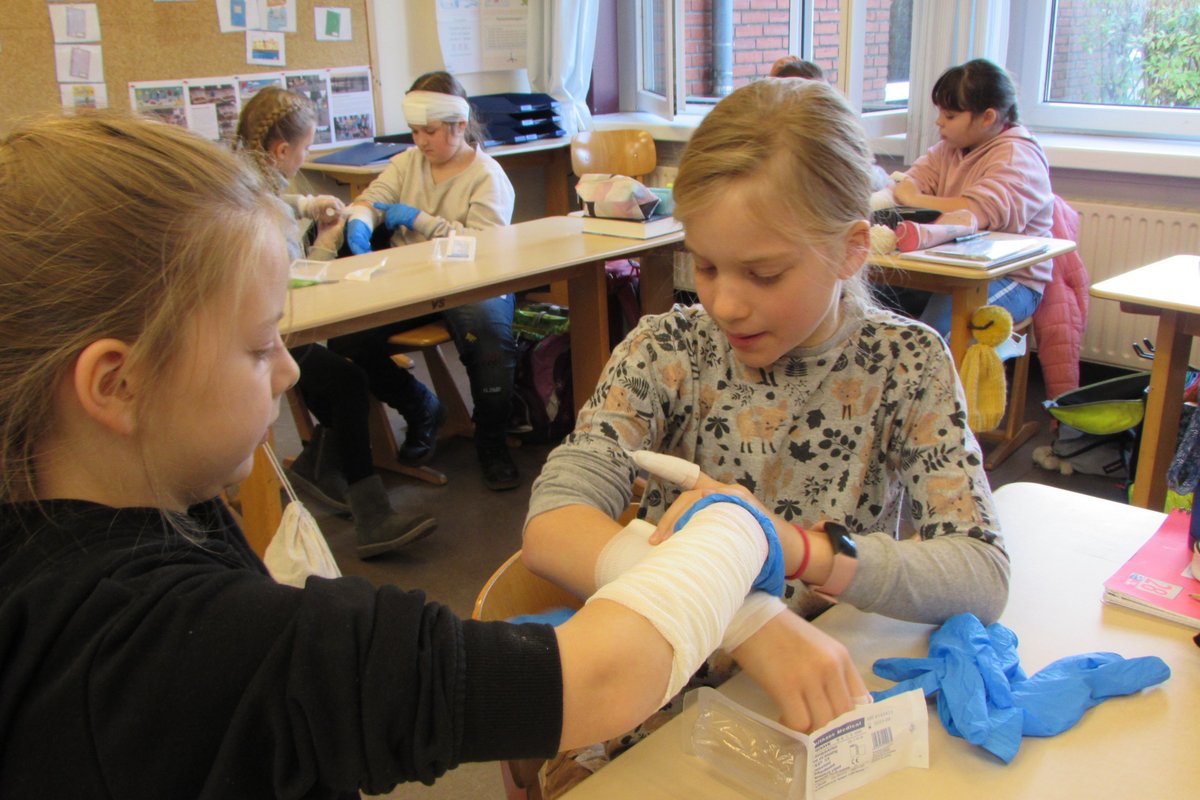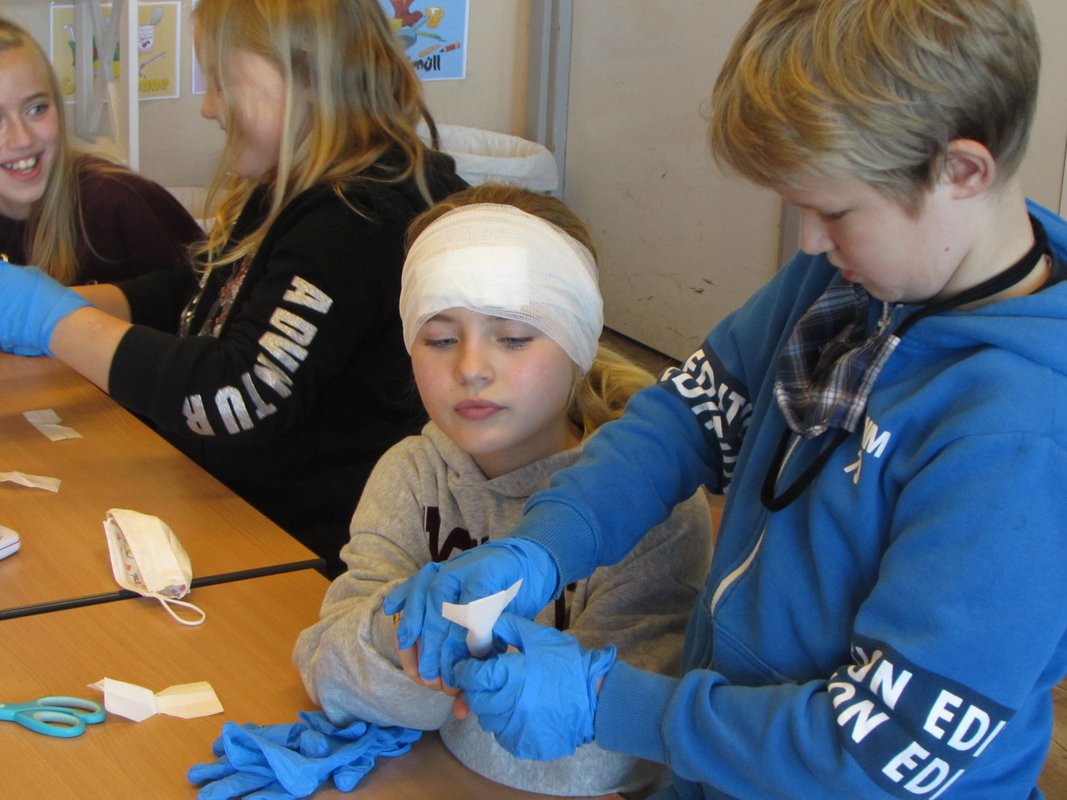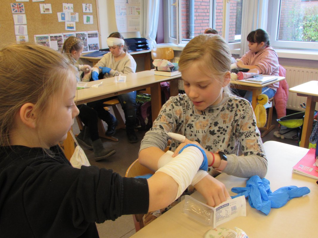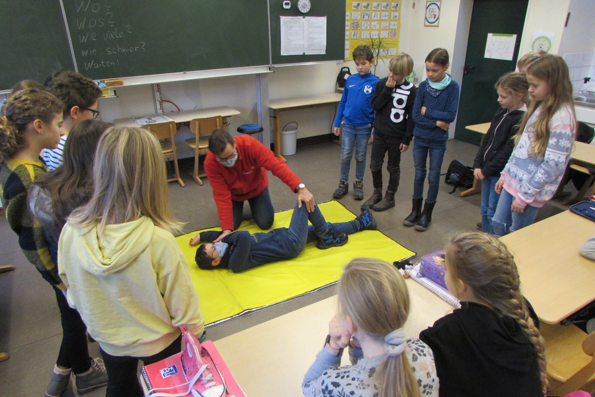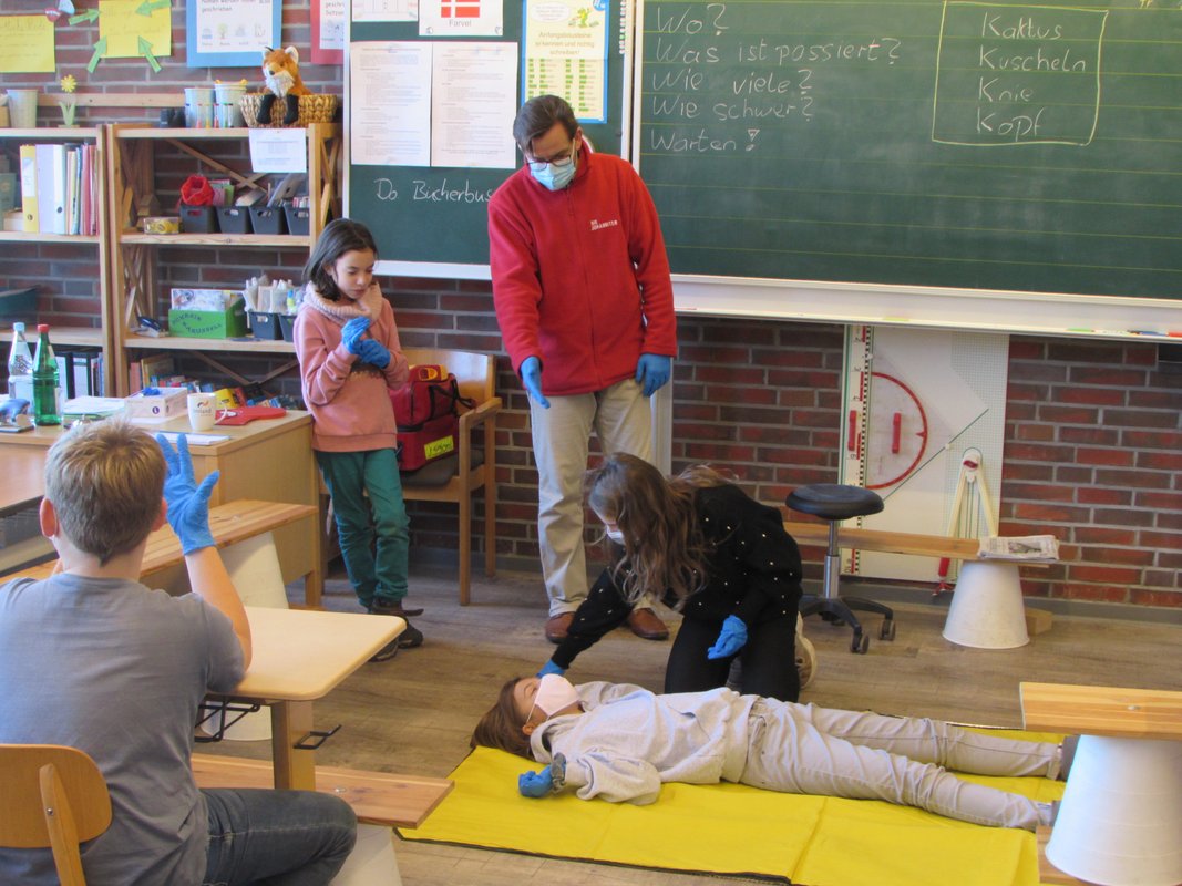 Mit viel Freude und großartigen schauspielerischen Leistungen lernten unsere Viertklässler die stabile Seitenlage und sind nun Profis was das Anlegen von Verbänden und Pflastern angeht. Auch bei den Themen Notruf, Vergiftungen und Insektenstichen können die Koalas und Füchse so manchem Erwachsenen noch etwas zeigen. Mit so vielen kompetenten Ersthelfern können wir uns in unsere Schule nun noch sicherer fühlen, denn wenn jemand stolpert, sich weh tut oder auch nur getröstet werden muss, sind unsere Viertklässler natürlich gleich zur Stelle.