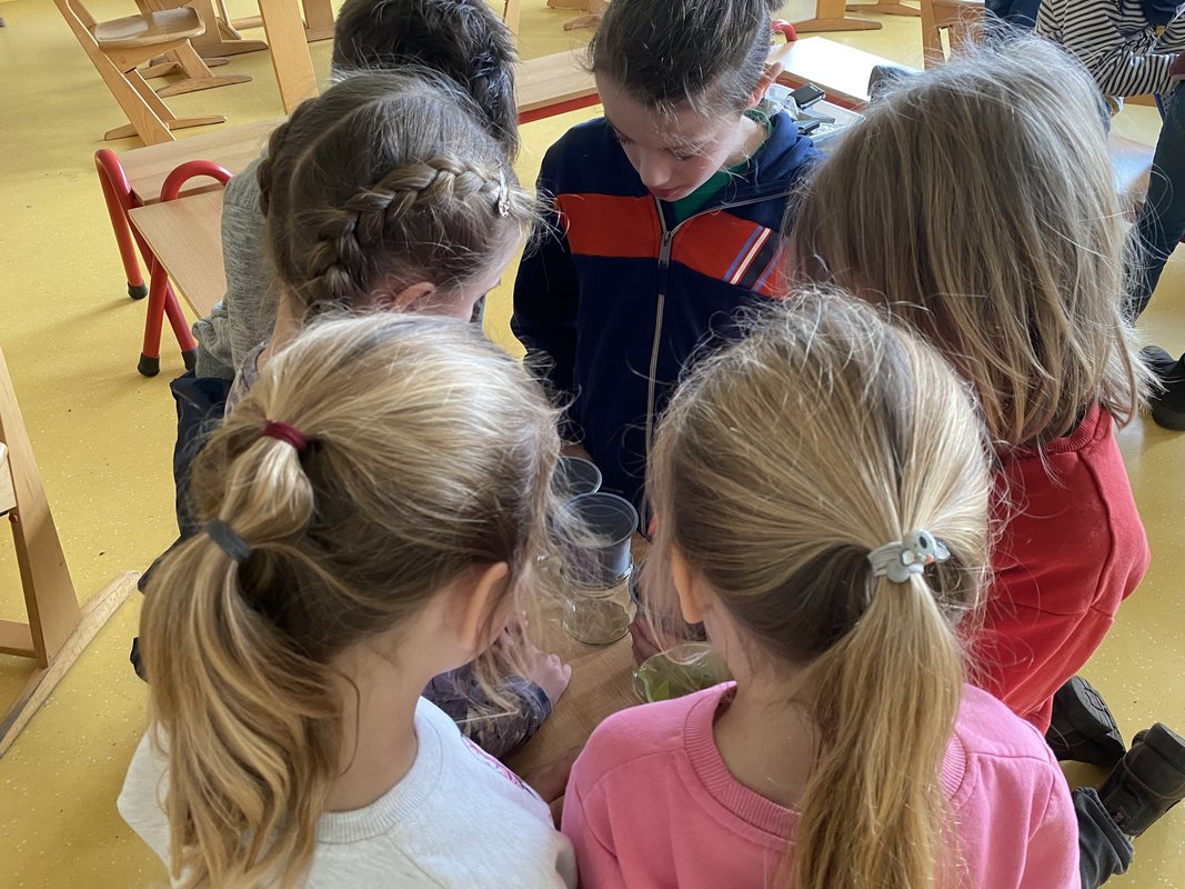 Die Erstklässlerinnen und Erstklässler erfuhren, dass Luft sogar versunkene Schätze aus den Tiefen des Ozeans heben und ganz schön bremsen kann, wenn man versucht, mit einem Fallschirm, der am Rücken befestigt ist, ganz schnell zu laufen. Das Element Erde und die Frage, wie viel Wasser welcher Boden speichern kann, zog die zweite Klasse in ihren Bann. Bei den Drittklässlerinnen und Drittklässlern wurde es nass, denn hier wurde rund um das Thema Wasser geforscht. Heiß her ging es dagegen für die 4. Klasse beim Thema Feuer. Zum Glück löste keines der Experimente die Rauchmelder aus... :)