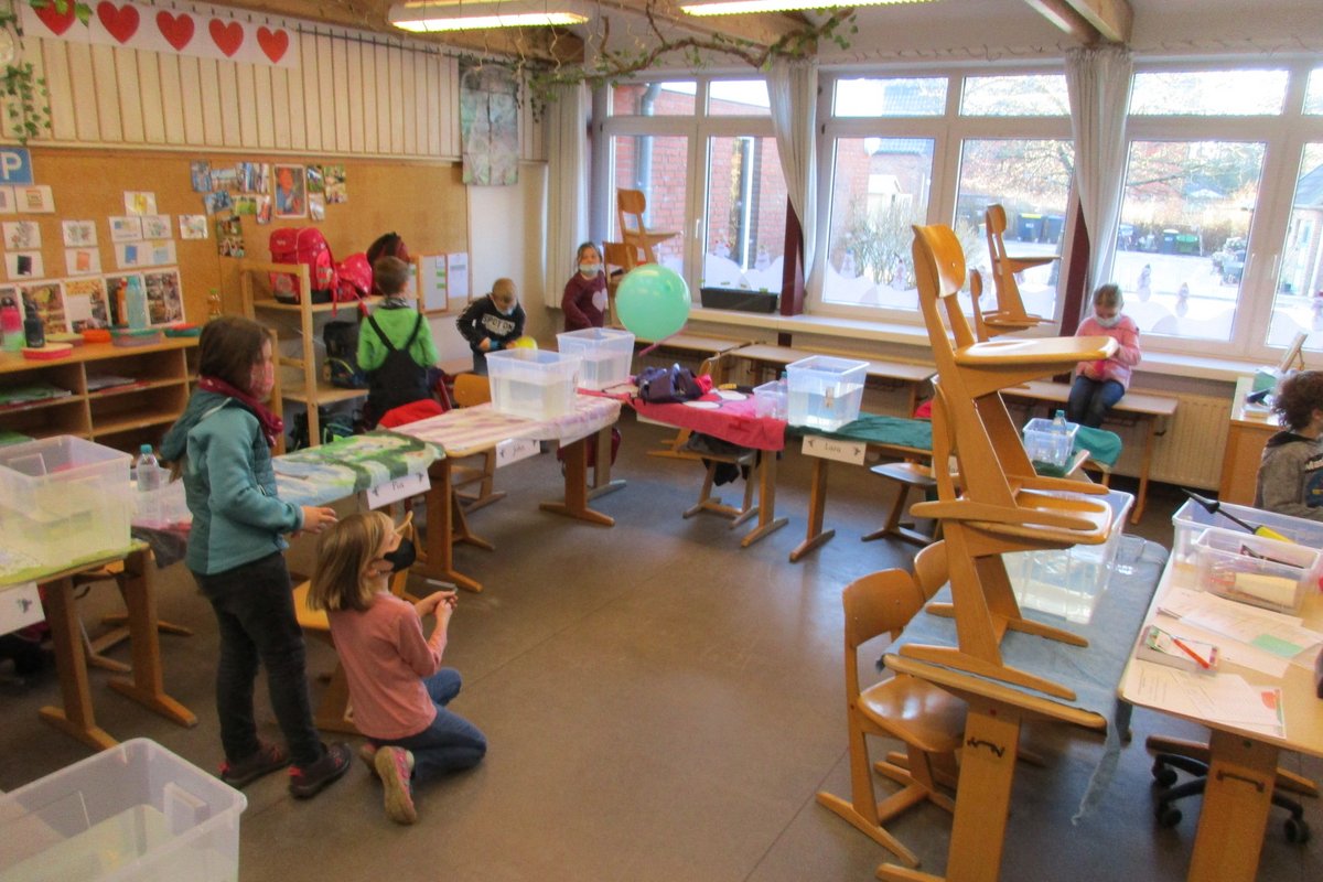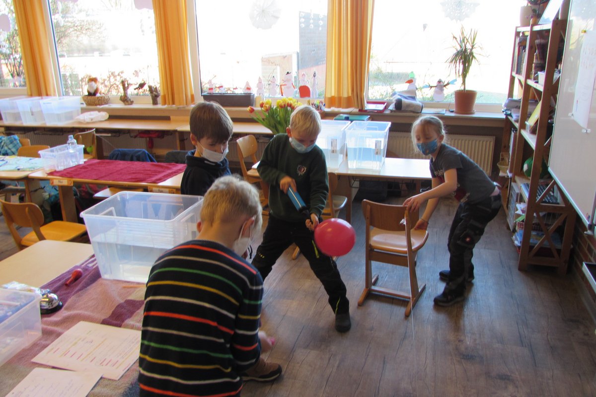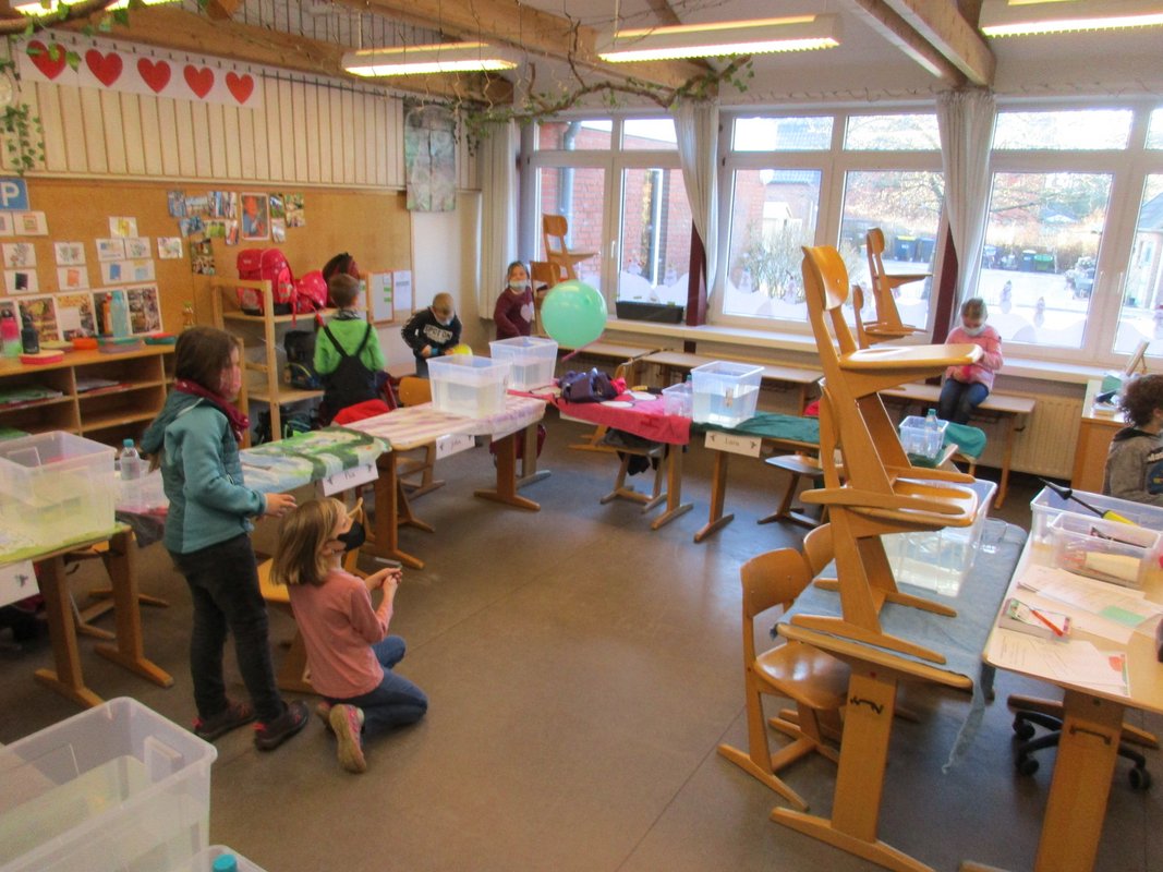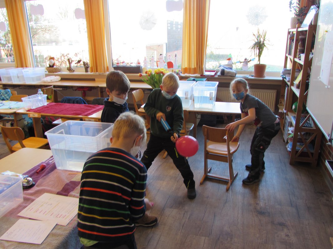 Der Forschertag hielt Einzug in der Grundschule Borgstedt und auf alle Kinder warteten an diesem Tag viele spannende Experimente. Alles drehte sich dabei um die vier Elemente Luft, Wasser, Erde, Feuer. Die Erstklässler erfuhren, dass Luft sogar versunkene Schätze aus den Tiefen des Ozeans heben kann und sie beim Laufen mit einem Fallschirm viel Kraft hat. Das Element Erde und die Frage, wie viel Wasser welcher Boden speichern kann, zog die Zweitklässler in ihren Bann. Bei den Drittklässlern wurde es nass, denn hier wurde rund um das Thema Wasser geforscht. Bei den Viertklässlern ging es heiß er. Aber zum Glück löste keines der Experimente zum Element Feuer die Rauchmelder aus. Auf so viele kleine Forscherinnen und Forscher wäre Albert Einstein bestimmt stolz gewesen und vor lauter Freude bei so viel Wissbegierde hätten ihm bestimmt die Haare zu Berge gestanden!