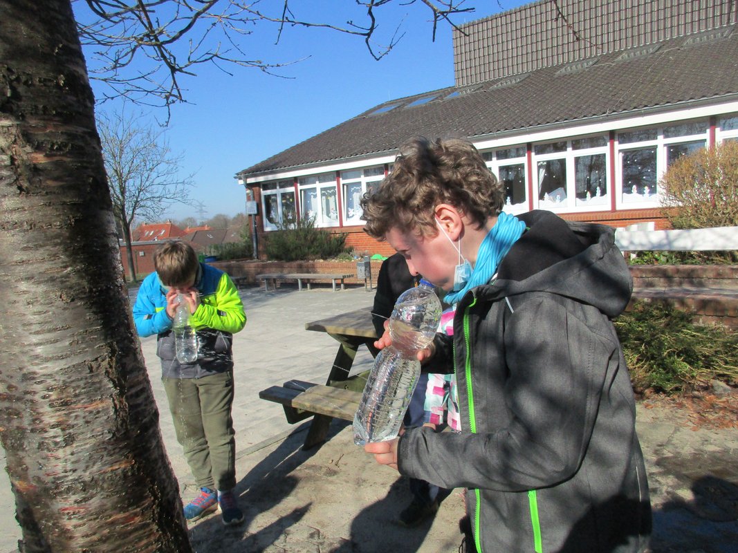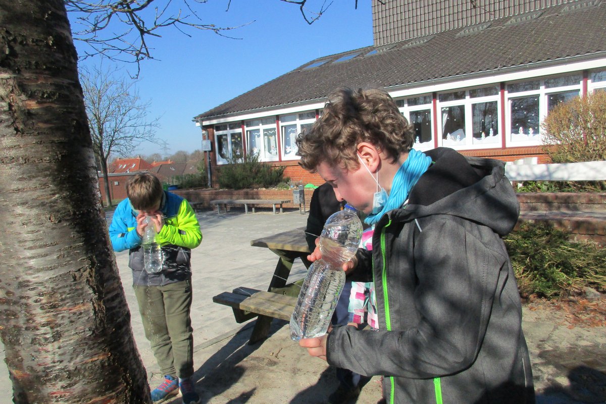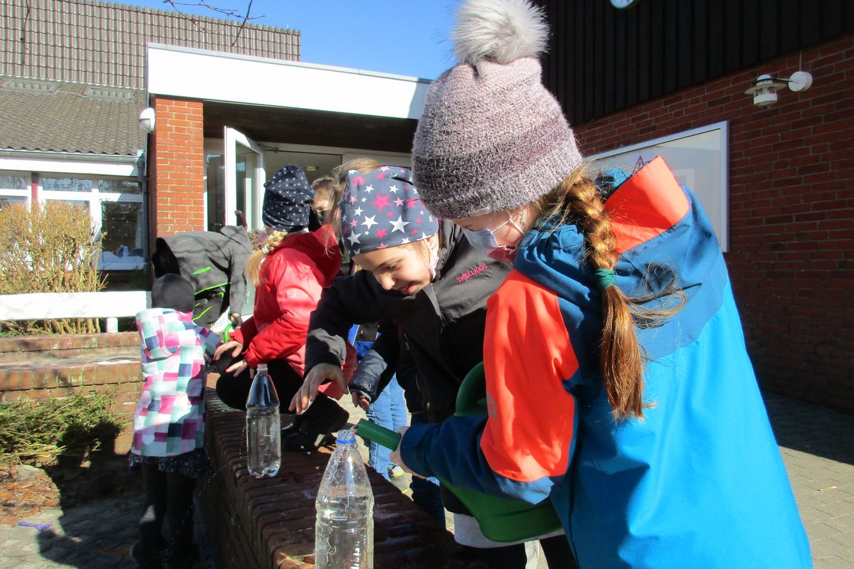 Der Forschertag hielt Einzug in der Grundschule Borgstedt und auf alle Kinder warteten an diesem Tag viele spannende Experimente. Alles drehte sich dabei um die vier Elemente Luft, Wasser, Erde, Feuer. Die Erstklässler erfuhren, dass Luft sogar versunkene Schätze aus den Tiefen des Ozeans heben kann und sie beim Laufen mit einem Fallschirm viel Kraft hat. Das Element Erde und die Frage, wie viel Wasser welcher Boden speichern kann, zog die Zweitklässler in ihren Bann. Bei den Drittklässlern wurde es nass, denn hier wurde rund um das Thema Wasser geforscht. Bei den Viertklässlern ging es heiß er. Aber zum Glück löste keines der Experimente zum Element Feuer die Rauchmelder aus. Auf so viele kleine Forscherinnen und Forscher wäre Albert Einstein bestimmt stolz gewesen und vor lauter Freude bei so viel Wissbegierde hätten ihm bestimmt die Haare zu Berge gestanden!