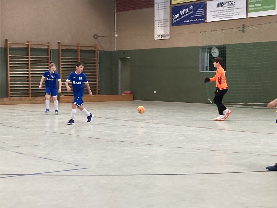 Auf ging es nach Alt Duvenstedt, denn dort fand wieder die Kreisvorrunde für die Kreismeisterschaften der Grundschulen im Futsal statt. Voller Vorfreude und mit ein wenig Aufregung trat unsere Schulmannschaft die Anreise an. In der Halle angekommen legte sich die Aufregung schnell und so machten alle Spielerinnen und Spieler eine tolle Figur auf dem Feld. Jeder kämpfte für den anderen und gab sein Bestes. Die Zuschauer durften tolle Pässe, schöne Tore, großartige Paraden, Lattenkracher und hervorragende Verteidigungsarbeit unserer Mannschaft bewundern. Alle zeigten ein durchweg faires Verhalten und vertraten unsere Schule vorbildlich. Neben dem Spaß, den das Turnier brachte, durften sich alle am Ende über einen tollen dritten Platz, mit einem Sieg, einem Unentschieden und fünf geschossenen Toren freuen. Wir bedanken uns ganz herzlich bei Herrn Behm, der uns begleitete und unsere Mannschaft mit der richtigen Motivation und taktischen Hinweisen zu diesem schönen Erfolg führte.