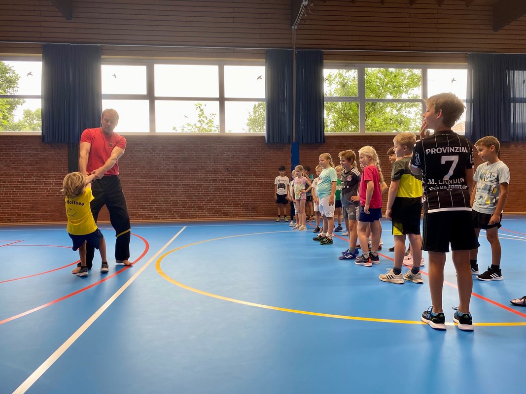 Vier Wochen lang bekamen unsere Erdmännchen und Fledermäuse jeden Montag für eine Stunde Besuch von Markus Waßmann von der KSH. Kindgerecht und anschaulich, mit vielen Beispielen, Partner- und Gruppenübungen lernten unsere Erdmäuse mögliche Eskalationsstufen kennen und fanden auch heraus, wie sie verschiedene Situationen entschärfen können. Wie entsteht ein Streit? Warum habe ich Angst und was kann ich dagegen tun? Wie kann ich meinen Körper und meine Stimme einsetzen? Diese und viele weitere Fragen kann unsere dritte Klasse nun beantworten. Ein besonderer Fokus des Kurses lag auf ganz vielen Alltagssituationen der Kinder, wie beispielsweise möglichen Konflikten beim Spielen auf dem Pausenhof. Außerdem gab es auch Hausaufgaben: Eine Woche lang sollten die Kinder darauf achten, besonders freundlich mit ihren Mitmenschen umzugehen. Die Erfahrungen waren durchweg positiv: Sie konnten durch ihr Verhalten nicht nur anderen eine Freude machen, sondern wurden im Gegenzug auch sehr freundlich behandelt - kleine Gesten zeigten große Wirkung. Der Kurs hat den Kindern viel Spaß gemacht und so freuten sie sich jeden Montag sehr auf ihre KSH-Stunde. Wir bedanken uns ganz herzlich bei Markus für diese tolle Zeit, deren Inhalte schnell im Alltag Anwendung fanden.