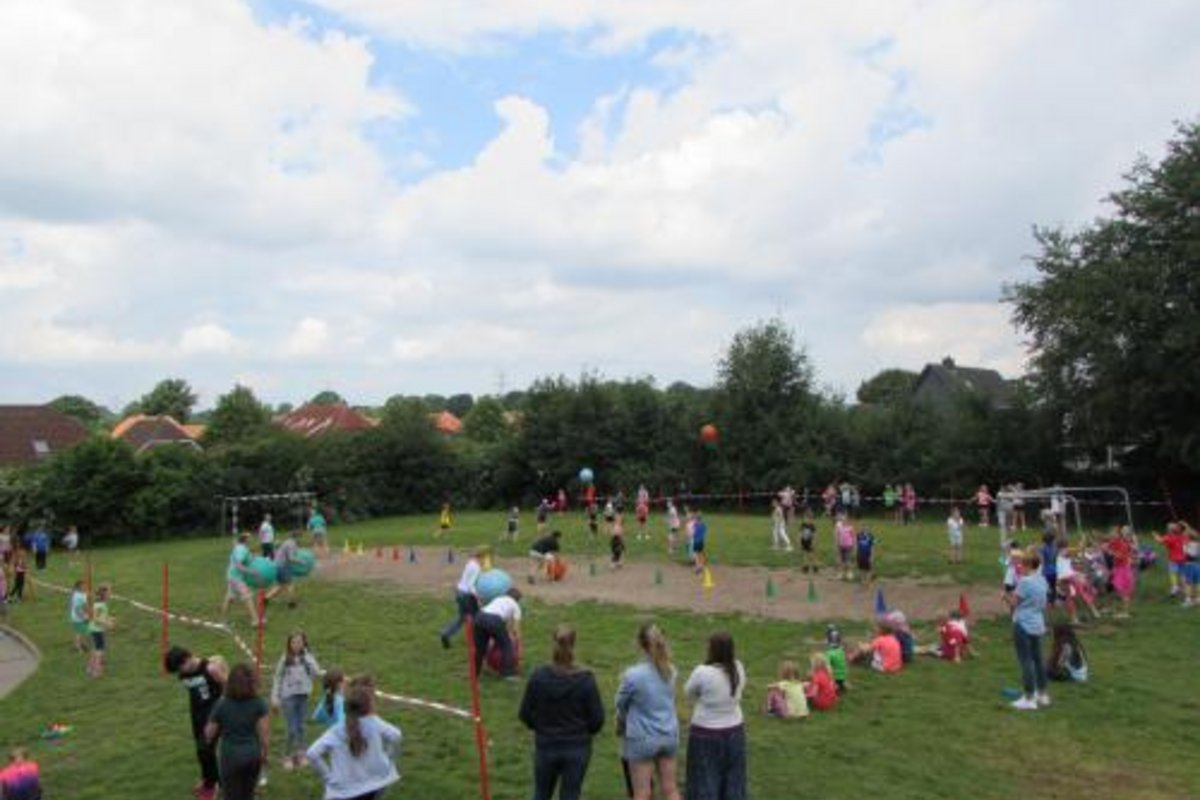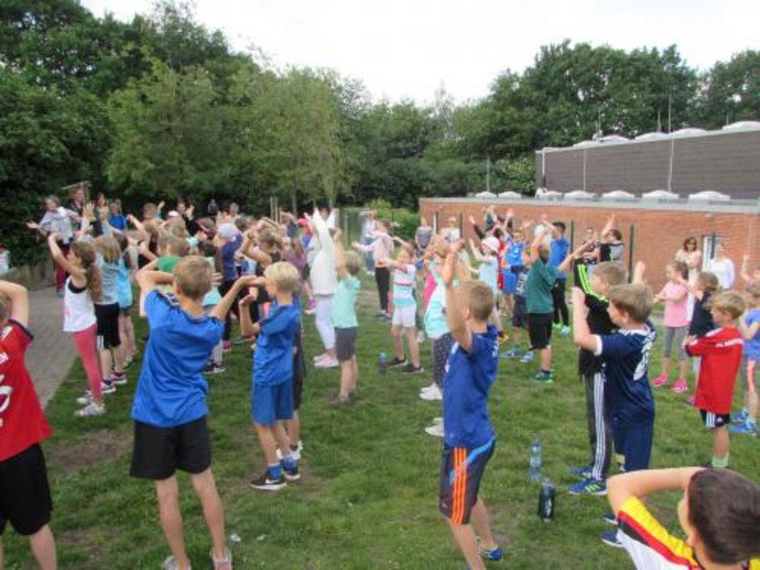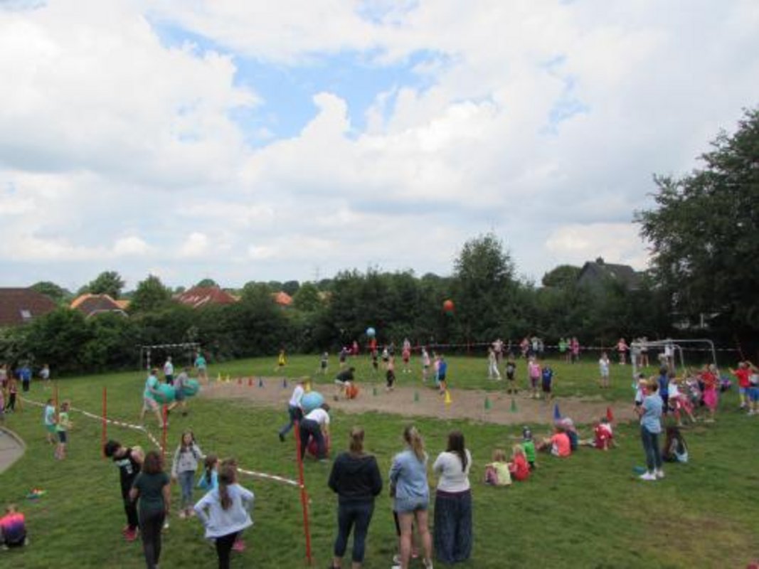 Am Freitag hatten wir einen tollen Tag. Es war der Tag des Sportfestes. Es gab 10 Stationen alle hatten gute Laune. Es lief die ganze Zeit Musik, das hat alle aufgemuntert. Es gab 10 Gruppen, die aus allen Klassen gemischt wurden. Am Anfang haben wir eine Aufwärmung gemacht. Als alle Gruppen fertig waren, haben wir ein Spiel gespielt, Klassen gegen Eltern. Es war spannend. Nach dem Spiel war die Siegerehrung an der Reihe. Manche Kinder haben es so toll gemacht, dass sie eine Medaille bekommen haben. Alle haben es super gemacht und hatten Spaß.