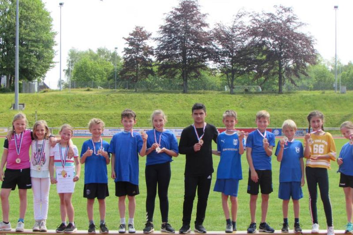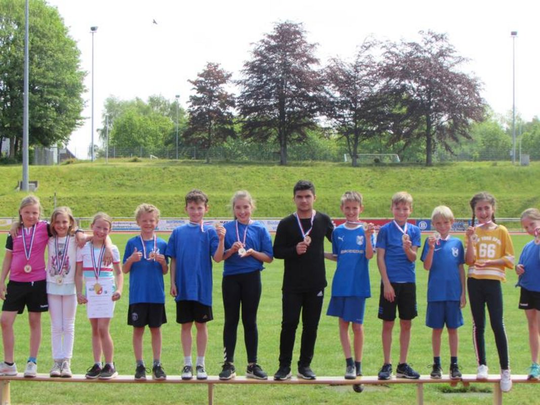 Am Donnerstag war es so weit, unsere Schulmannschaft durfte nach Büdelsdorf zu den Kreismeisterschaften. Da gab es viele Disziplinen zum Beispiel Laufen, Weitsprung und Weitwurf mit Medizinbällen. Dabei hat einer von uns über 10 Meter geworfen. Am Ende wurden wir Erster von den kleinen Grundschulen und jeder hat eine Kugel Eis bekommen, das war toll.