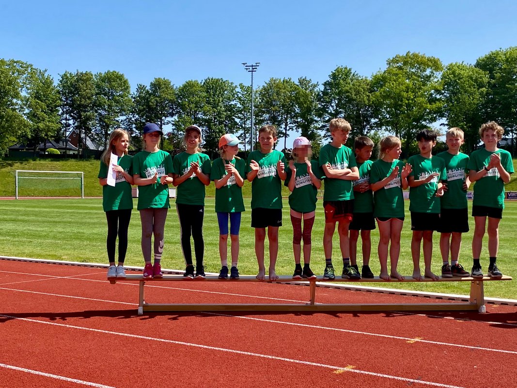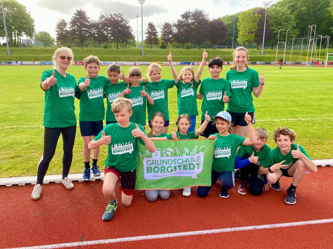 Auch in diesem Jahr machten sich wieder zwölf Kinder aus Klasse 3 und 4 auf die große Reise nach Büdelsdorf, um unsere Schule bei den Leichtathletik-Kreismeisterschaften zu vertreten. Das Wetter spielte hervorragend mit und die Sonne strahlte mit den Kindern im schönen Eiderstadion um die Wette.