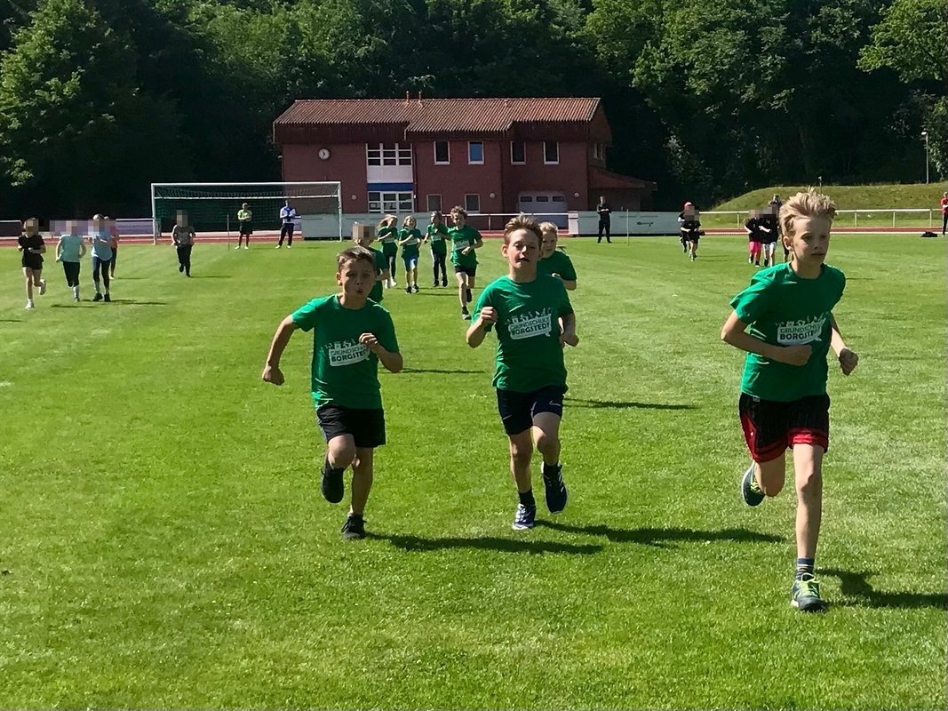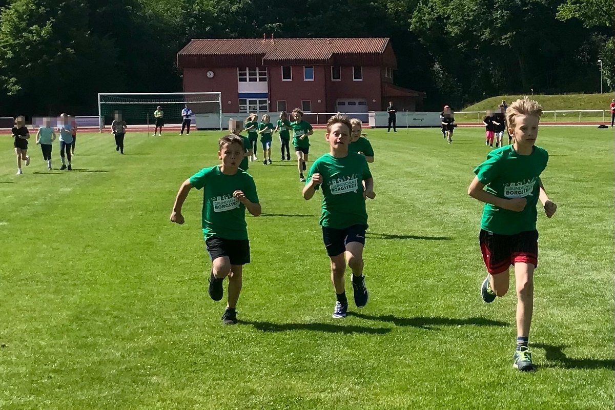 Motiviert wurden die Bananenkartons überflogen, der Schlagball bis nach Borgstedt geschickt, der Medizinball mit viel Schwarzbrotpower nach vorn gewuchtet und beim Weitsprung über die Sandgrube hinweggeflogen. Beim abschließenden Ausdauerlauf gaben die Kinder nochmal alles: Voller Energie wurde Strecke um Strecke zurückgelegt.