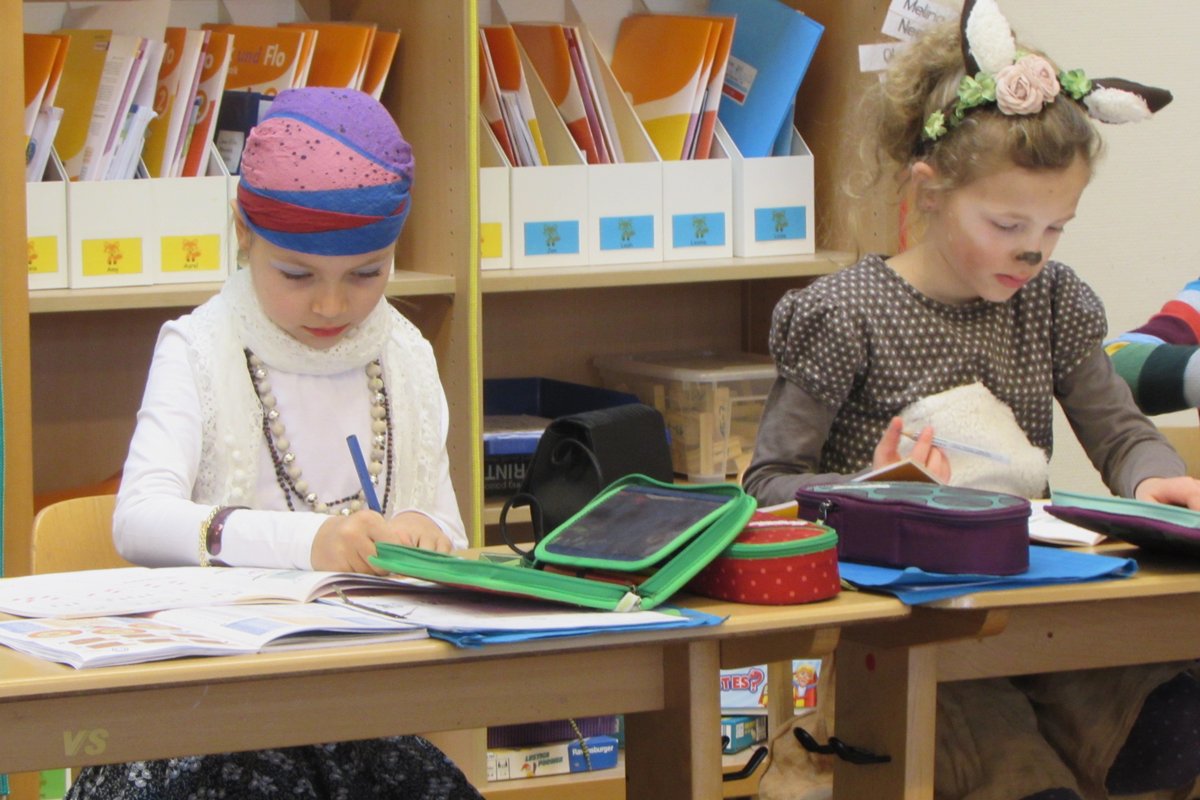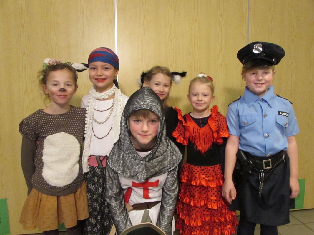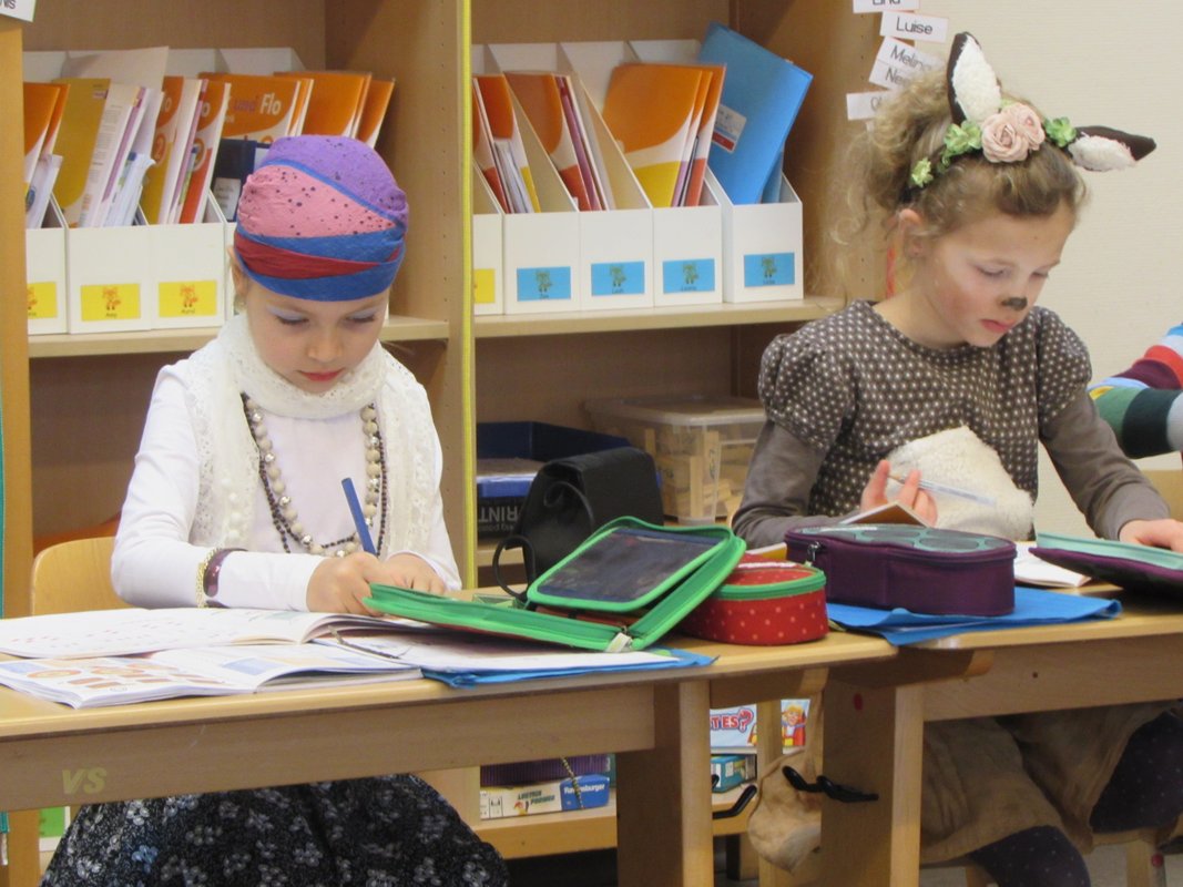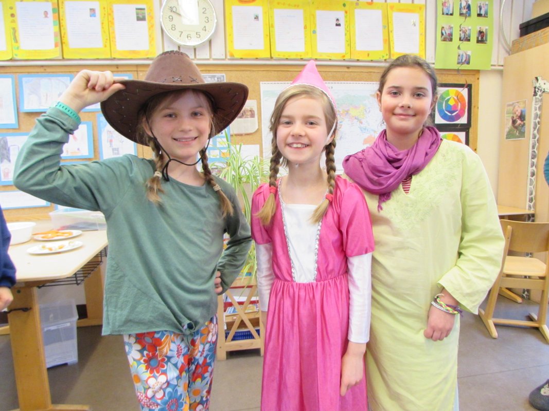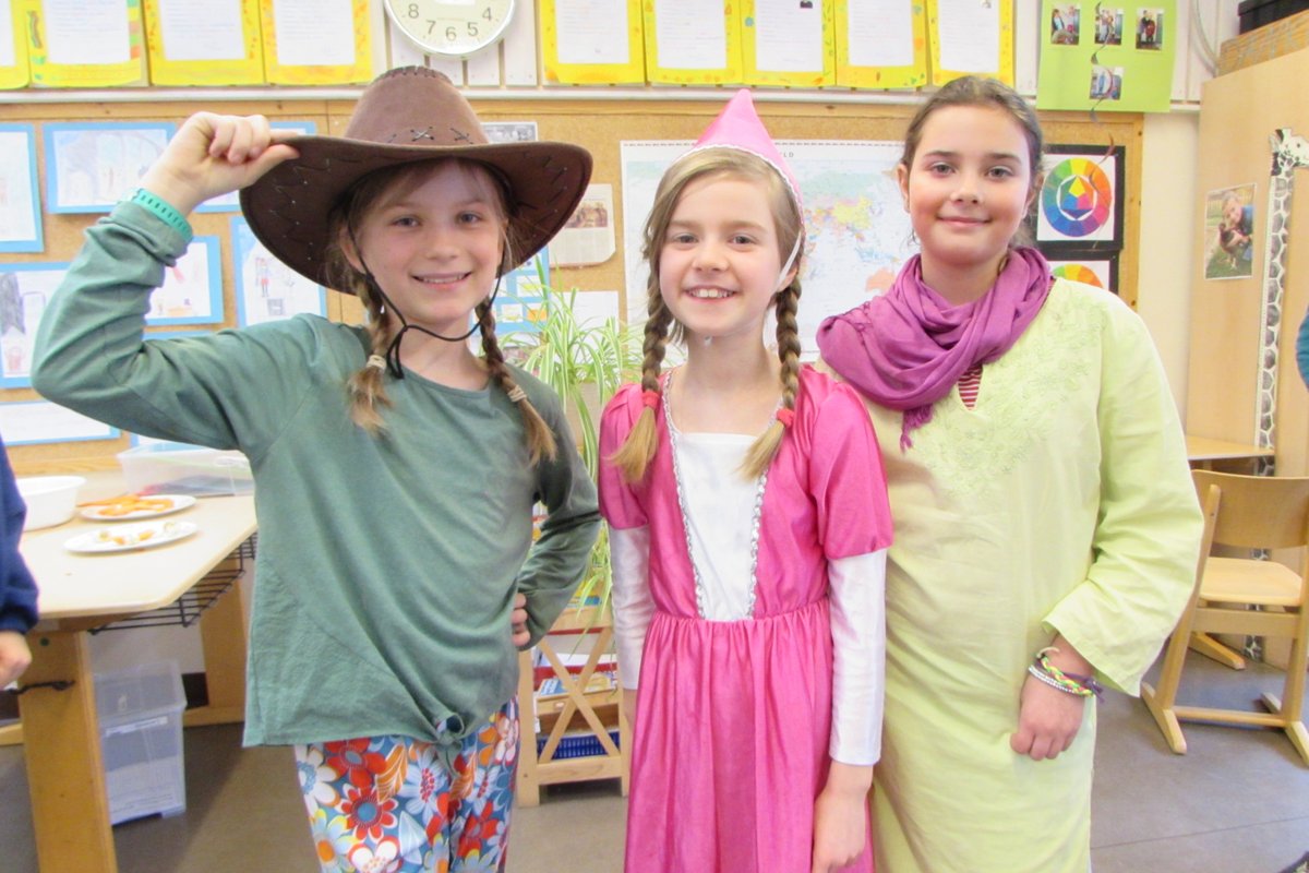 Es war ein toller Tag, denn es war Mottotag zum Thema Fasching. Es gab Cowboys, Anakin Skywalker, Hippies, Polizisten, Einhörner und vieles mehr. Die Lehrer haben sich auch verkleidet. Die Kinder haben ihre Kostüme die ganze Zeit getragen. Sie sind damit Seil gesprungen und einige haben sogar verkleidet Fußball gespielt.