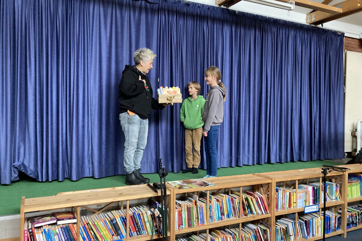 Insgesamt sind 3.252,80€ zusammengekommen, die in der Aula einer Vertreterin der Schutzstation übergeben werden konnten. Die Kinder waren mächtig stolz und das Dankeschön von Frau Rademacher von der Schutzstation sehr herzlich. Frau Rademacher erzählte den Kindern viel Interessantes über die Ernährung von Eichhörnchen, die Aufgaben der Schutzstation und wofür das gesammelte Geld der Kinder eingesetzt werden würde. Außerdem bekam jedes Kind noch eine Eichhörnchen-Postkarte geschenkt. Den Schulflur schmückt nun eine große Dankeschön- Bildkarte der Eichhörnchen-Schutzstation, an welcher die Kinder jetzt stolz vorbeispazieren können.