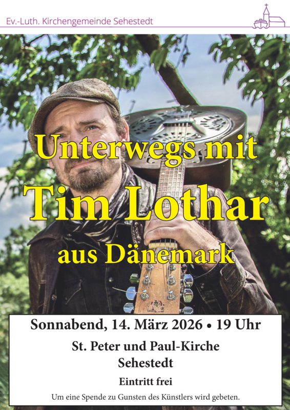 Erstmals kommt Tim Lothar aus Dänemark nach Sehestedt. Am Sonnabend den 14. März um 19 Uhr gibt der Sänger in der Kirche in Sehestedt sein Debüt.